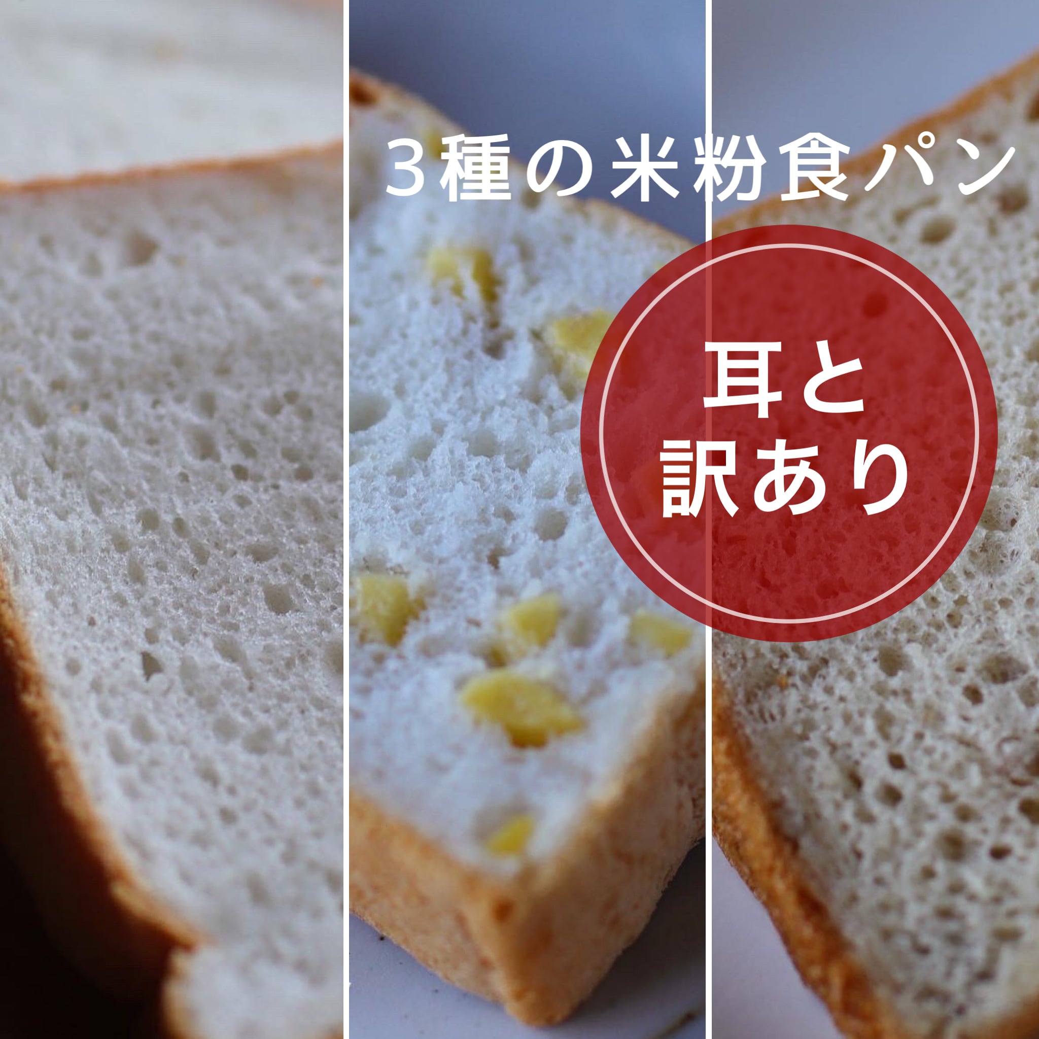 訳ありグルテンフリーパンの詰め合わせ~3種の米粉食パン